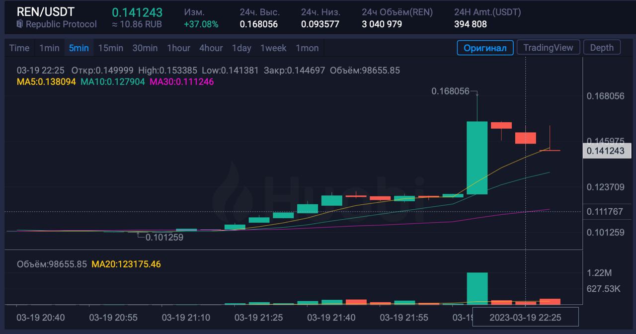 Сама арбитражная ситуация длилась в районе полутора часов, что не сказать что мало, а достаточно долго. И плюсом ко всему, данную монету можно быдл купить на Binance, Huobi, Gate… (Первый скрин биржа Binance), а продать на ByBit (второй скрин) с наценкой 10-20%. !