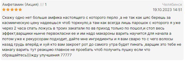 Всем привет! Знакомство с магазином прошло весьма забавно. Вечером, листая страницы с магазинами в поисках одного грамма мефа, мне не удавалось найти подходящий вариант,, но я не остановился на одной попытке, и время от времени заходил и проверял витрины. И вот в очередной мониторинг я вижу данный шоп, с нужным мне весом, типом клада, и локации. Смущало одно, цена, подозрительно низкая. Думаю была не была, рискну, тем более название шопа помню с гидры. Покупаю магнит. Получаю адрес, открываю фото, и даже не удивляюсь. На фото асфальтный тротуар вдоль забора, метка показывает на тротуар, и красочное описание " чёрная иза"! Ясно всë, подумал я, швырконтора, открываю диспут и прошу вернуть мне средства. В диспуте мне отвечают, чтобы я прислал фото с места поисков!!! На что я ответил, что даже не поеду туда, так как сам понимал что это дырка. Но так же я понимал, что шоп включил режим брони, и всë это затянется. Далее всë по классике, следуя нелëгкой наркоманской доле, пиздую на адрес. Сказать что место пиздецкое, это ничего не сказать, тьма, фонарик вообще не вариант. Пошарил слегка впотьмах, и ушëл ни с чем. О том что я там был, продавцу сообщать не стал, думал с утра еще сгоняю. Приехав утром, всë тоже самое, пусто, вдоль забора обкопан каждый столб! Да и забор ещë оказался, забором детской площадки! Ну всë думаю, шоп, тобi пизда). Зафиксировав сие вопиющие безобразие, удалился с территории как побитый пëс. Какого же было моë удивление, когда недалеко отойдя от места, мне в диспуте приходит уточнение, с новой меткой на фото, и пояснением. Цитата из диспута: "Логично если позиция магнит.А на фото метка рядом с железным забором.То нужно искать у железного основания"