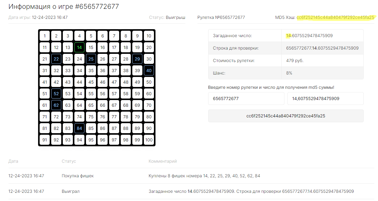 На самом разделе кракене уже написано, что в номере рулетке есть выиграшное число.