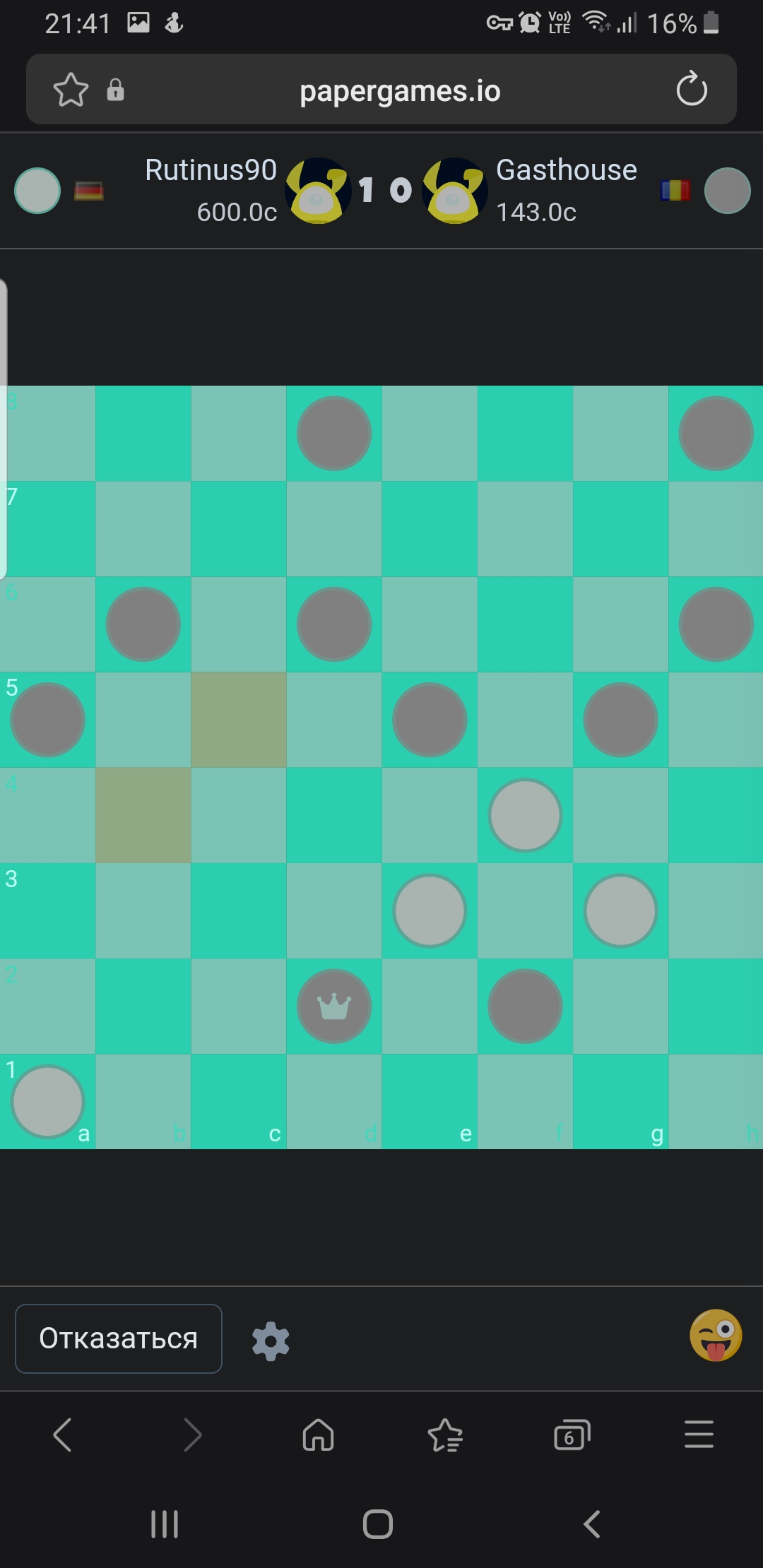 Если в течение отведённого времени один из игроков полностью теряет возможность продолжать игру, его соперник автоматически объявляется победителем.
